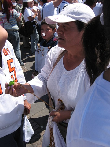 Bueno luego del desahogo político, veamos algunos detalles de la marcha, se vio de todo, desde la señora que vendía los pitos a $1.000 pesos hasta el señor que vendía la paloma oficial de la marcha, y también el que ofrecía los pitos "de la paz".